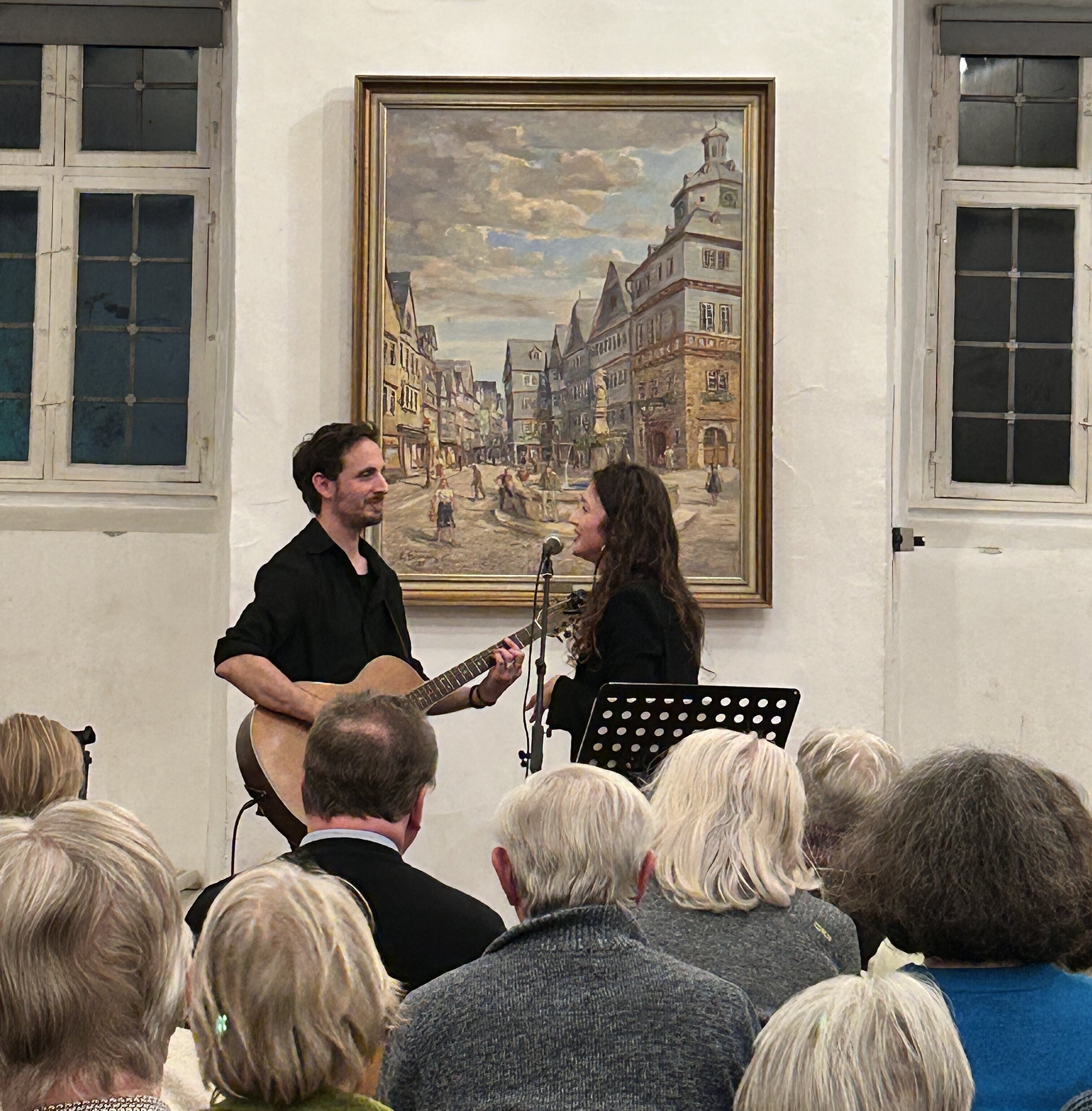 Der Abend wurde unvergesslich durch das mitreißende Chanson-Konzert des französischen Künstler-Duos „La Fille de l’ Eau“. Mit ihrer authentischen und emotionalen Darbietung von Chansons wie „La bohème“ von Charles Aznavour nahmen Ophélie Lehmann und Clément Séclin das Publikum mit auf eine musikalische Reise durch französische Lebenskunst und Sprachgefühl – ein Moment, der die deutsch-französische Begegnung fühlbar machte und das Publikum verzauberte. Wenn sie nicht in Herborn gastieren, sind sie auf den Theaterbühnen in Paris zu sehen, aktuell mit einer Eigenproduktion der Iphigénie von Racine, weiterführende Informationen gibt es in französischer Sprache online www.lafilledeleau.com.