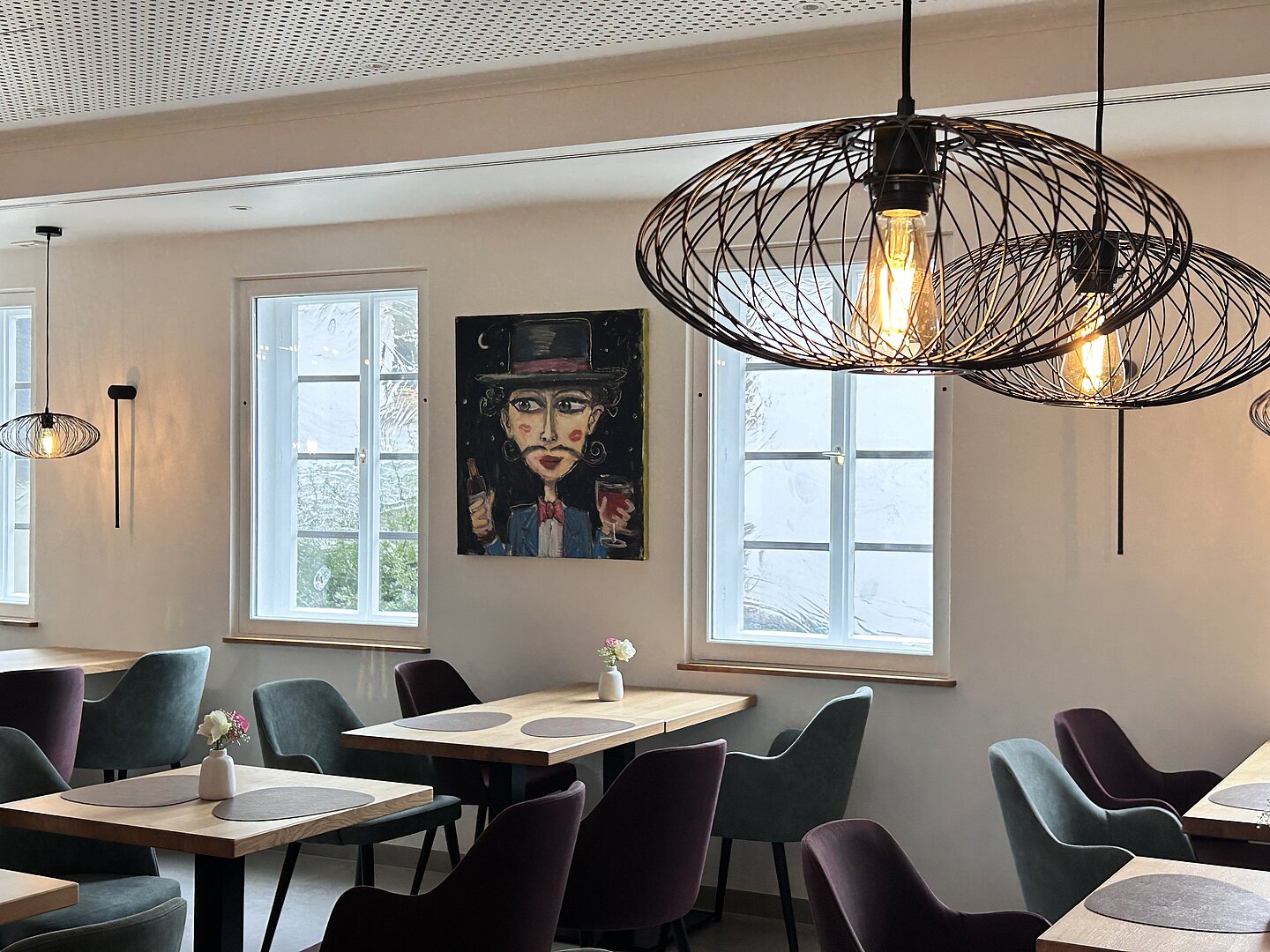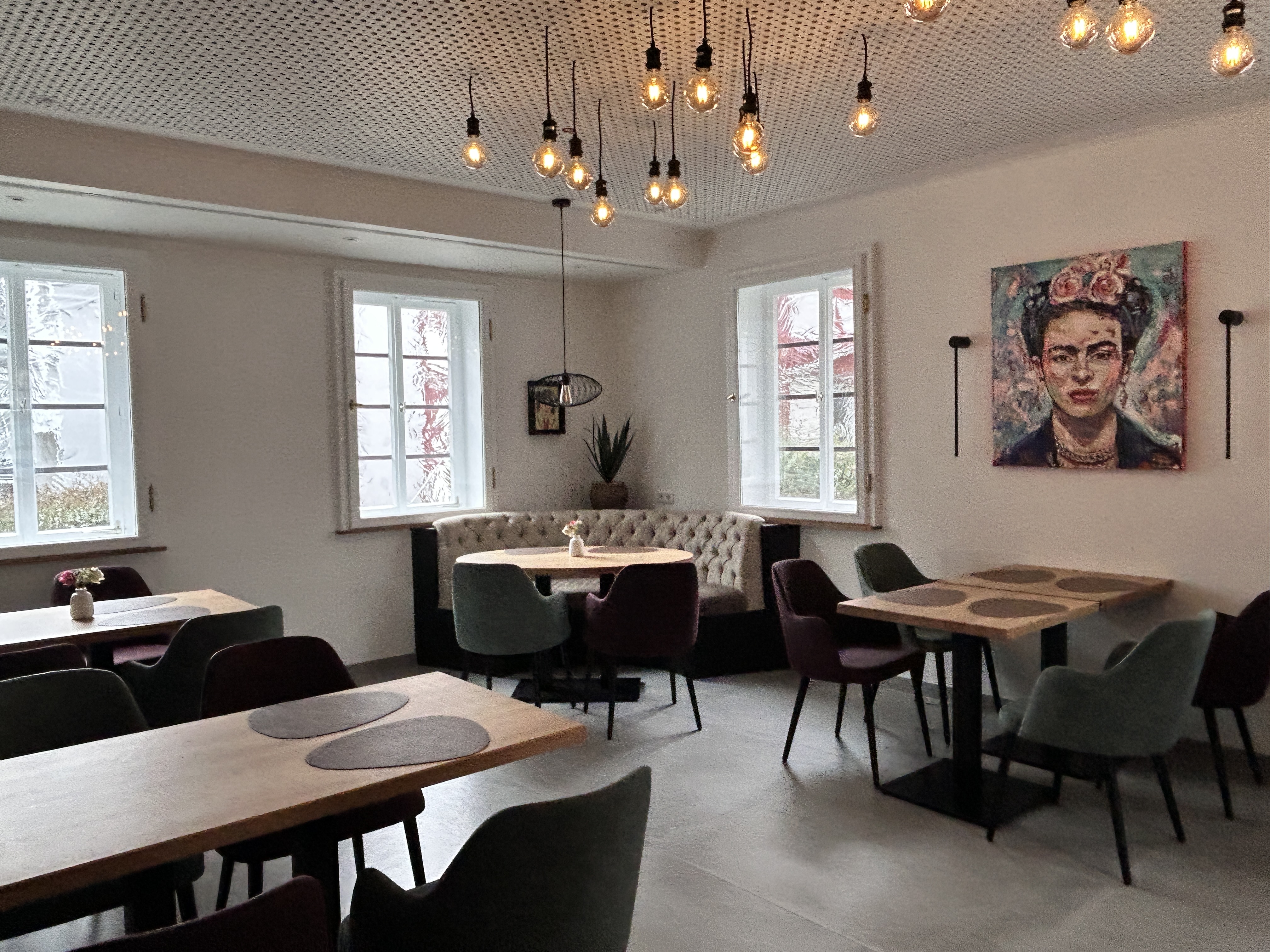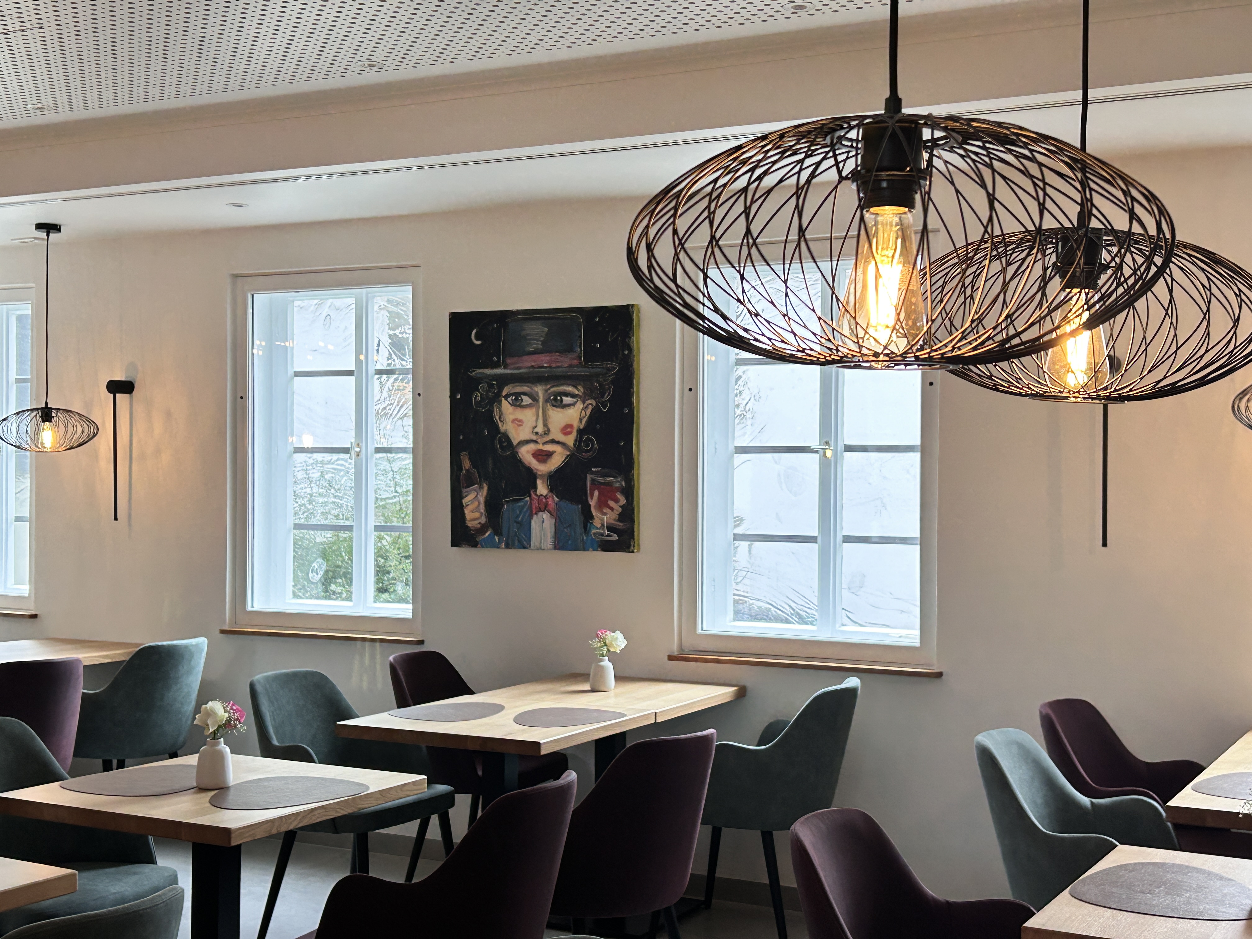 Das Restaurant ist modern, offen und hell gestaltet: weiß verputzte Wände, Deckenspots, die das Lokal ins richtige Licht setzen und große Fliesen lassen den Speiseraum mit seinen 90 Sitzplätzen großzügiger wirken. Anpassungen beim Boden ermöglichen nun die barrierefreie Nutzung der Räume. Die sanitären Anlagen erstrahlen nach der Generalsanierung in Weiß-, Grau- und Holztönen. Die alte Heizanlage wurde ersetzt, die Fußbodenheizung erneuert und eine neue Be- und Entlüftungsanlage installiert. Nach dem Innenausbau folgte schließlich auch ein frischer Anstrich der Fachwerk-Fassade, der die Herborner Hohe Schule nun auch von außen erstrahlen lässt.