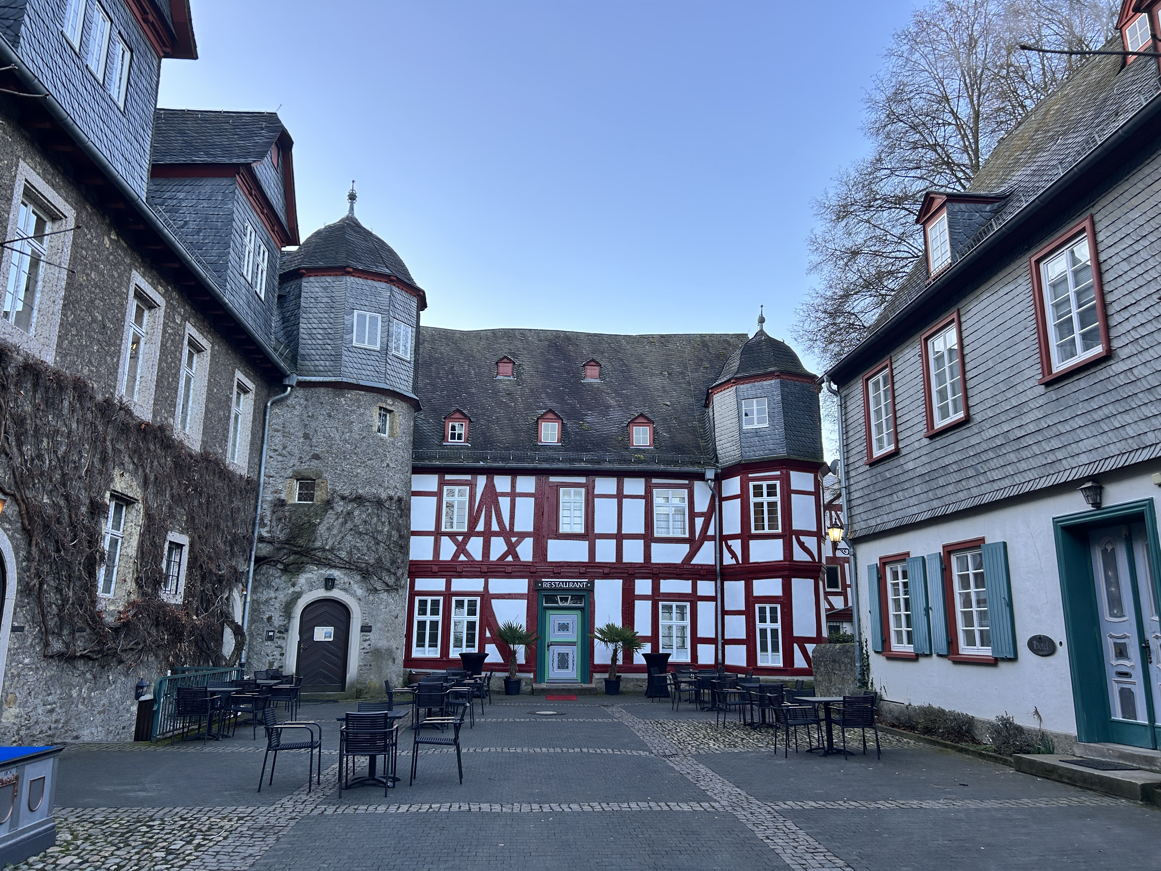 Die Stadt Herborn hat seit Ende 2024 die Kernsanierung des geschichtsträchtigen Gebäudekomplexes mit Neukonzeption des Restaurants durchgeführt, die den historischen Charakter bewahrt und gleichzeitig zeitgemäße Anforderungen an Bauvorschriften, Brandschutz und Barrierefreiheit erfüllt. Der Gebäudekomplex umfasst das Restaurant mit einer Gesamtfläche von 248 m² sowie das angrenzende Hotel mit acht Zimmern auf 321 m².