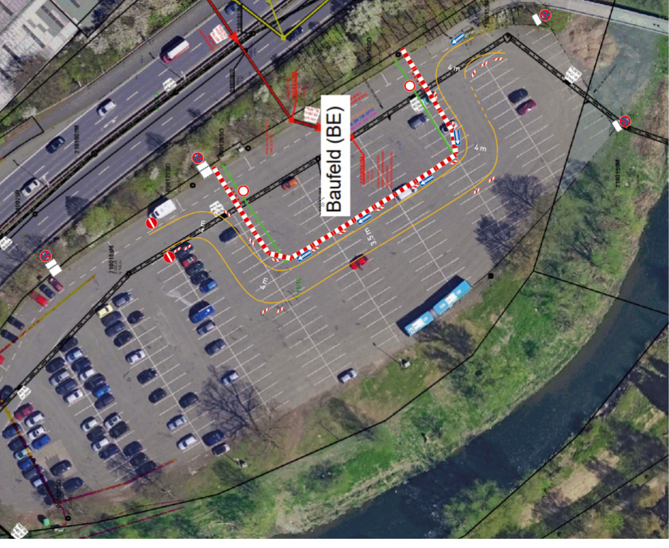 Während der Bauarbeiten stehen einige Parkplätze nicht zur Verfügung. Verkehrsteilnehmer werden gebeten, die ausgewiesene Beschilderung vor Ort zu beachten und mehr Zeit für die Parkplatzsuche einzuplanen. Der Zugang zur Fußgängerbrücke ist während der Bauarbeiten gewährleistet. Die Stadtverwaltung bittet um Verständnis für die vorübergehenden Einschränkungen und bedankt sich für die Rücksichtnahme aller Nutzerinnen und Nutzer.